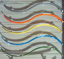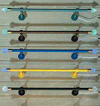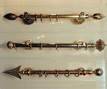 И наконец, карнизы из полублагородных сплавов. Они сейчас сверхмодны, они стильны и требуют особого отношения к себе, в том числе и в смысле оплаты: в кармане покупателя должно лежать не менее $60 за погонный метр. Материалы — легированная сталь, латунь и даже бронза. Преимущество литых карнизных стержней в том, что диаметр штанги может быть произвольным — не гостовские 28 мм, а особо модные тонкие "палки" толщиной от 12 мм, по которым эффектно скользят шелк, лен и прочие стильные ткани. Все это карнизное великолепие в штатном варианте бывает упаковано и представлено в собранном виде на полках специализированных салонов и магазинов.