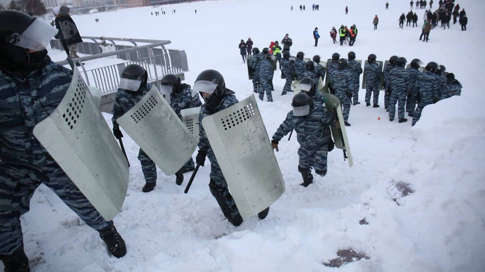 ОМОН во время несанкционированной акции в поддержку Алексея Навального в Екатеринбурге