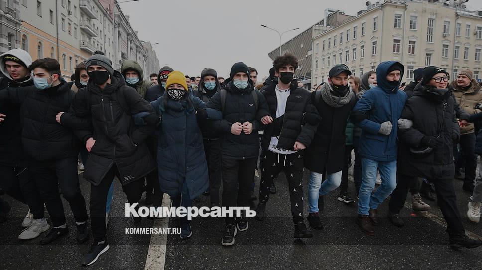 «Уже конвейером пошли задержания. Некоторых волоком тащат в автозаки»,— сообщает корреспондент “Ъ” с Пушкинской площади в Москве