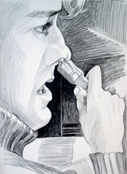 Около 500 живописных и графических работ писателей разных эпох и направлений (от Василия Жуковского до Леонида Андреева) устроители выставки "Писатель рисующий" распределили по значимости. Здесь и рисунки на полях, и настоящие портреты с пейзажами. Кто-то просто отвлекался от работы, рисуя рядом со словесными шедеврами ничего не значащие завитки, но потомки обожествили и завитки. Некоторые писатели, напротив, не доверяли никаким оформителям. Независимо от того, умели ли они профессионально рисовать или нет, они сами выполняли иллюстрации, сами делали книги. У футуристов это получалось лучше всех: работы Владимира Маяковского, Василия Каменского, Алексея Крученых стали классикой книжного искусства. В кандидаты на звание лучшего писателя-художника конца ХХ века организаторы выставки выбрали Андрея Вознесенского, Людмилу Петрушевскую, Дмитрия Пригова и Владимира Сорокина (его рисунок на фото).