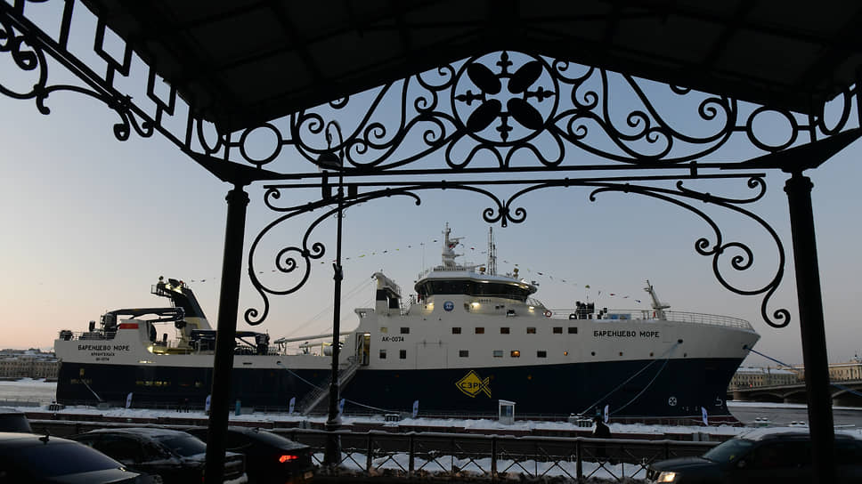 Рыболовецкий траулер "Баренцево море" у причальной стенки на Английской набережной