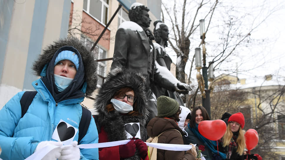 В Москве на Старом Арбате прошла акция «Цепь солидарности и любви». Акция началась в 14:00 и продлилась примерно до 16:00. Участники хотели таким образом поддержать женщин-политзаключенных. По оценке корреспондента “Ъ”, в цепь выстроились несколько сотен человек. Источник ТАСС в правоохранительных органах заявил о 100 участниках. По данным «Белого счетчика», в 15:00 цепь насчитывала 235 человек.