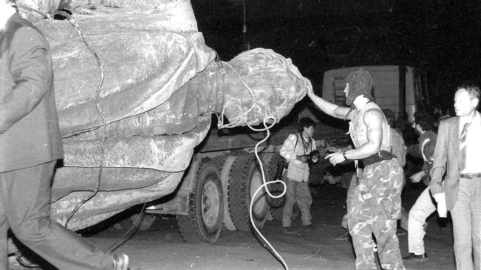 Демонтаж памятника наркому внутренних дел Феликсу Дзержинскому на Лубянской площади в 1991 году
