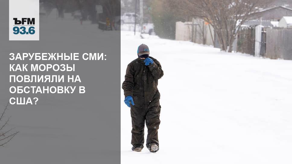Экстремальные холода в США отразились на нефтяном рынке. Они обернулись снижением добычи сырья, и в результате цена нефти марки Brent на лондонской бирже превысила $64 за баррель впервые с января прошлого года. Резкое похолодание в США замедлило и темпы вакцинации во многих штатах. Задерживаются поставки препарата. В некоторых городах возникают сложности при хранении вакцины из-за отключения электричества. Наибольшие проблемы шторм вызвал в Техасе. Президент Джо Байден направил туда федеральную помощь. На днях несколько миллионов местных жителей остались без электричества и водоснабжения. В результате бури погибли несколько десятков человек. Местные жители называют происходящее Армагеддоном. Подробности — в обзоре иностранной прессы на “Ъ FM”.