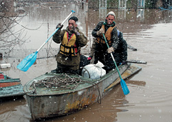| Ежегодно жителям паводковых областей приходится заниматься неакадемической греблей |