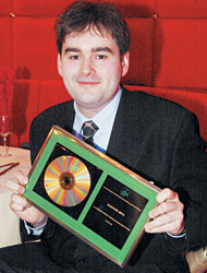 На прошлой неделе состоялось вручение журналистской премии, учрежденной самой авторитетной антипиратской организацией — Международной федерацией производителей фонограмм (IFPI). Премия вручается средствам массовой информации, выступающим "против пиратства за цивилизованный музыкальный рынок", уже шестой раз и, по словам организаторов, "публикаций год от года становится все больше". В этом году в конкурсе рассматривались работы более тысячи журналистов, представляющих свыше 100 средств массовой информации, включая печатные и интернет-издания, радио и телевидение. Жюри, в которое вошли поэт Илья Резник, журналист Артемий Троицкий, глава регионального отделения IFPI Игорь Пожитков, глава информационного агентства Intermedia Евгений Сафронов, главный эксперт Intermedia Александр Тихонов и глава Национальной федерации производителей фонограмм Алексей Угринович, уже второй год подряд присуждает главный приз ("Золотой диск") публикациям журналистов ИД "Коммерсантъ". По итогам голосования "Золотой диск" получил журнал "Деньги" за статью "Из песни цифр не выкинешь" в номере от 24 ноября 2003 года. Помимо главного приза жюри присудило корреспондентам "Денег" Илье Нагибину и Алексею Ходорычу поощрительные призы за публикации "Четырехногие бандиты" и "Звуковой порок". На фото: автор победившей публикации корреспондент "Денег" Александр Воронов с "Золотым диском".