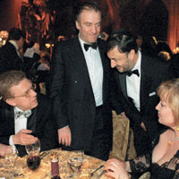 | | ФОТО: ВАЛЕРИЙ ЛЕВИТИН | | Музей естествознания, гала-концерт "Русская рапсодия". Слева направо: министр финансов РФ Алексей Кудрин, дирижер Валерий Гергиев, глава израильского холдинга Lev Leviev Лев Леваев, председатель правления Внешторгбанка Андрей Костин — состоят джентльменами при певице Алле Бородиной |