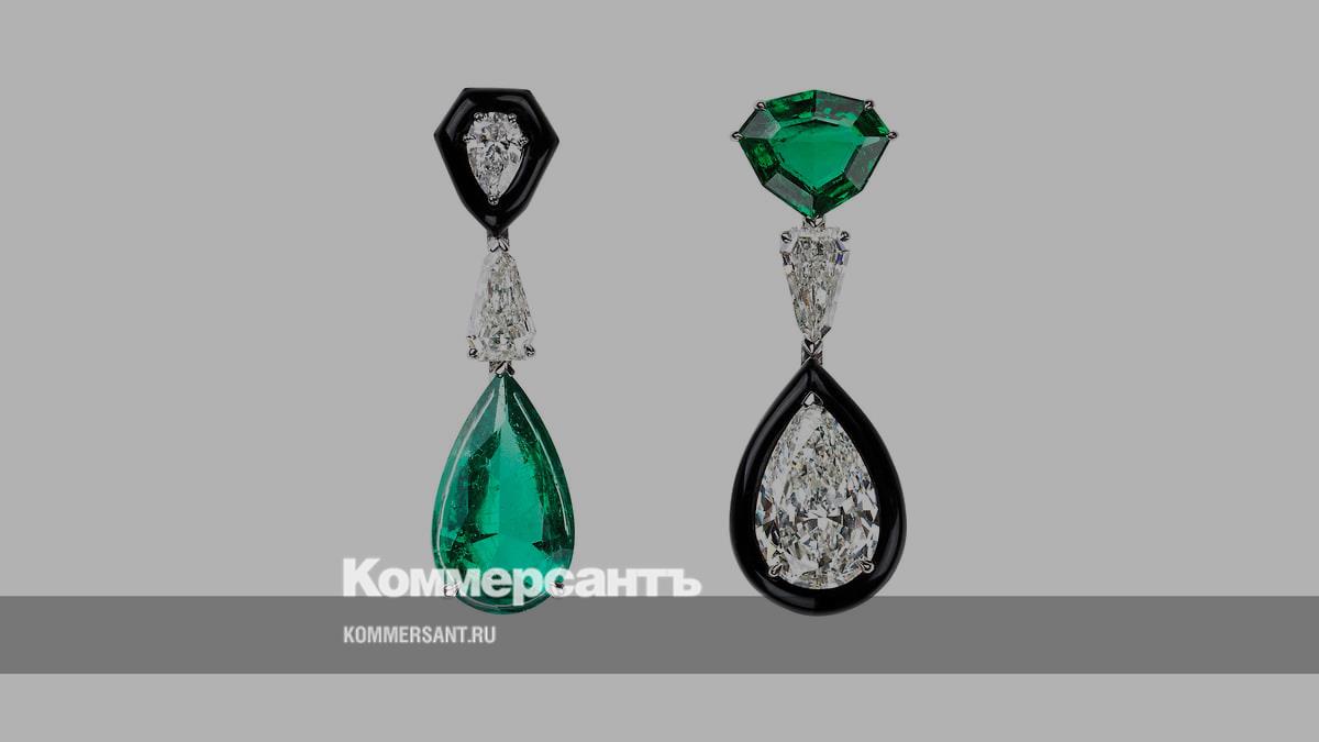 Oui, белое золото, изумруды, бриллианты, черная эмаль, Nikos Koulis