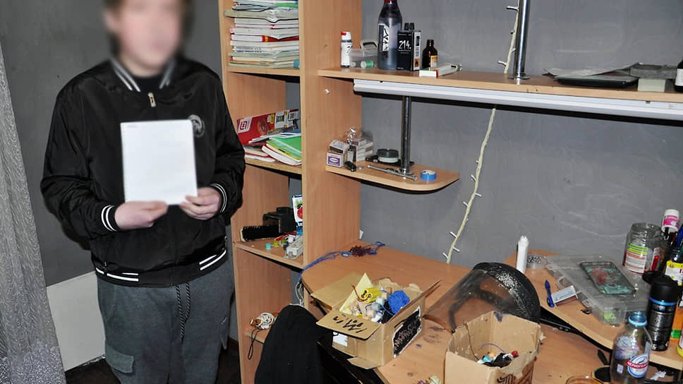 Судя по фото, сотрудники ФСБ также изъяли из квартиры небольшую упаковку неизвестного вещества с присоединенными к упаковке проводами. На трех фотографиях, опубликованных Центром общественных связей ФСБ, снят сам несостоявшийся «колумбайнер», на вид ему 14–15 лет.