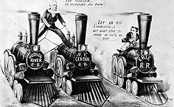 Строительство железнодорожной империи Вандербильт начал с приобретения одной из самых крупных и перспективных компаний — Harlem Railroad. Затем он решил купить еще и Hudson River Railroad, чтобы объединить их и получить контроль над ключевыми участками железнодорожного сообщения на восточном побережье. Но тут на его пути вновь встал старый знакомый — Дэниел Дрю, который с помощью операций на бирже и политических махинаций попытался торпедировать намечавшееся слияние. Однако победа и на сей раз осталась за Вандербильтом — в 1864 году он провел своих людей в совет директоров Hudson River, а годом позже стал ее президентом.