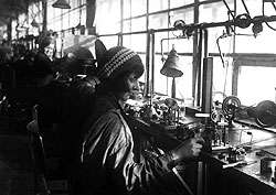 "Из Трамеляна,— писал один из них в отчете,— мы выехали в Ле-Локль — один из главных центров часовой промышленности — для осмотра предприятия. Фирма 'Зенит' приняла нас с совершенной любезностью. Предприятия 'Зенит' во много раз больше, чем те, которые мы видели в Трамеляне, и являются образцом хорошей организованности и оборудованности. На первый взгляд нас поразил большой процент, по сравнению с предприятиями Рэймонда, ручной работы, однако это объясняется гораздо более высоким качеством часов 'Зенит' и изготовлением специальных дорогих типов (хронометров и пр.). Для характеристики того, как основательно и исчерпывающе поставлено дело у 'Зенит', отмечу, что больше половины оборудования, занятого на предприятии, вырабатывается самой фирмой (большей частью американскими станками); имеется специальное техническое бюро инженеров; каждая часть механизма проверяется; сейчас фирмой после долгих изысканий выпущен новый тип электрических часов, пускаемых в ход посредством обыкновенного светового провода. Количество и многообразие оборудования бросалось в глаза. 'Зенит' занимает около 850 рабочих, вырабатывает всевозможных типов часов, в том числе и будильники, и жел. дорожные. Годовое производство карманных и ручных часов, по заявлению одного из директоров фирмы, Косандрие, выражается в цифре в 150 000 штук в год. Что касается производственной возможности выпуска будильников, то возможности фирмы 'совершенно не ограничены'. Средняя суточная заработная плата 8-10 шв. франков (3-4 рубля), но для отдельных категорий рабочих, работающих по сдельной системе, доходит до 20 шв. франков в день (8 рублей).