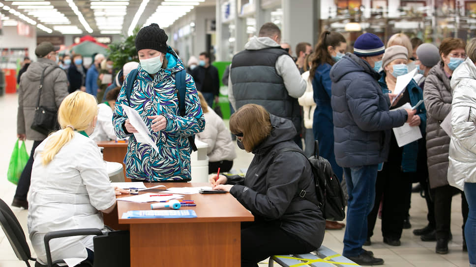 Всего с начала вакцинации в торговых центрах Екатеринбурга привились более 3,5 тыс. человек. Еще более 1,3 тыс. человек поставили прививку в других городах Свердловской области. «Обращаю внимание, что, сделав первую прививку в конкретном торговом центре, вам в дальнейшем для получения второго компонента нужно будет вернуться сюда же в указанные дату и время. Как правило, это происходит через три недели»,— сказал главный эпидемиолог Екатеринбурга Александр Харитонов.