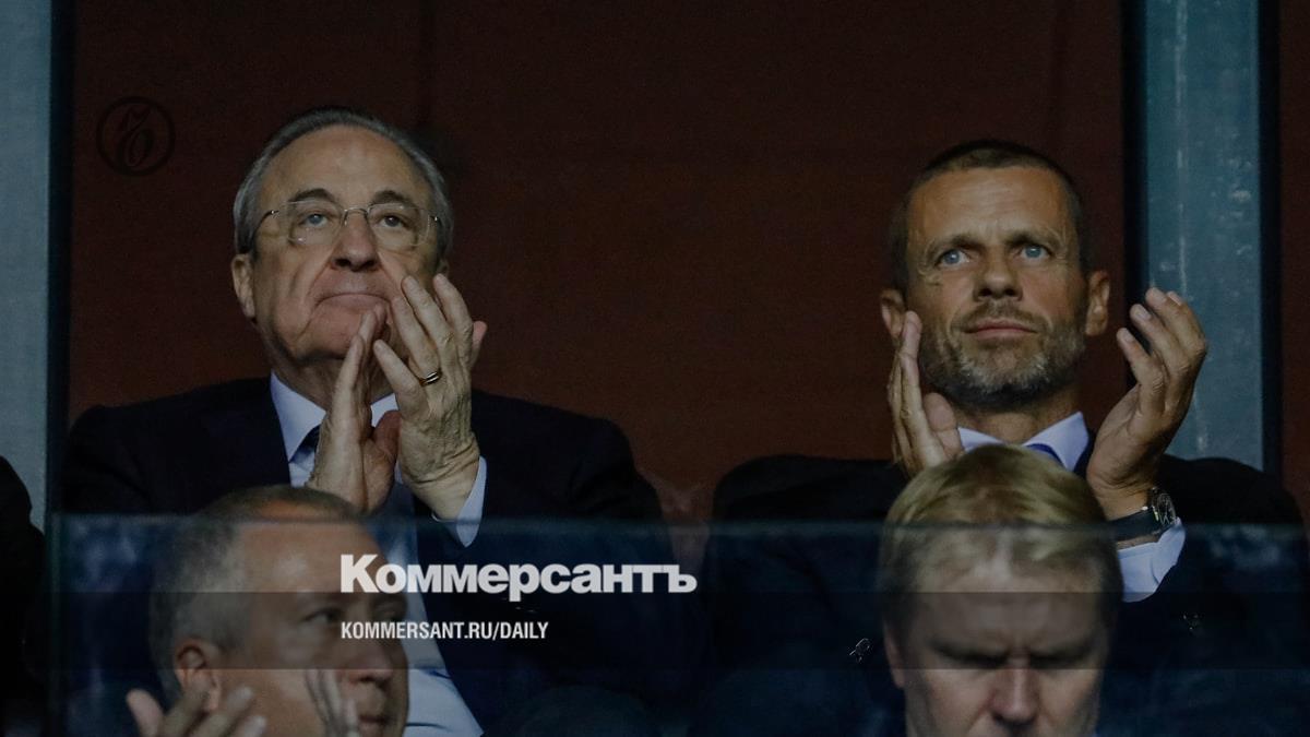 Президент Суперлиги Флорентино Перес (слева) и президент UEFA Александр Чеферин, кажется, готовы идти до конца в борьбе за свои турниры