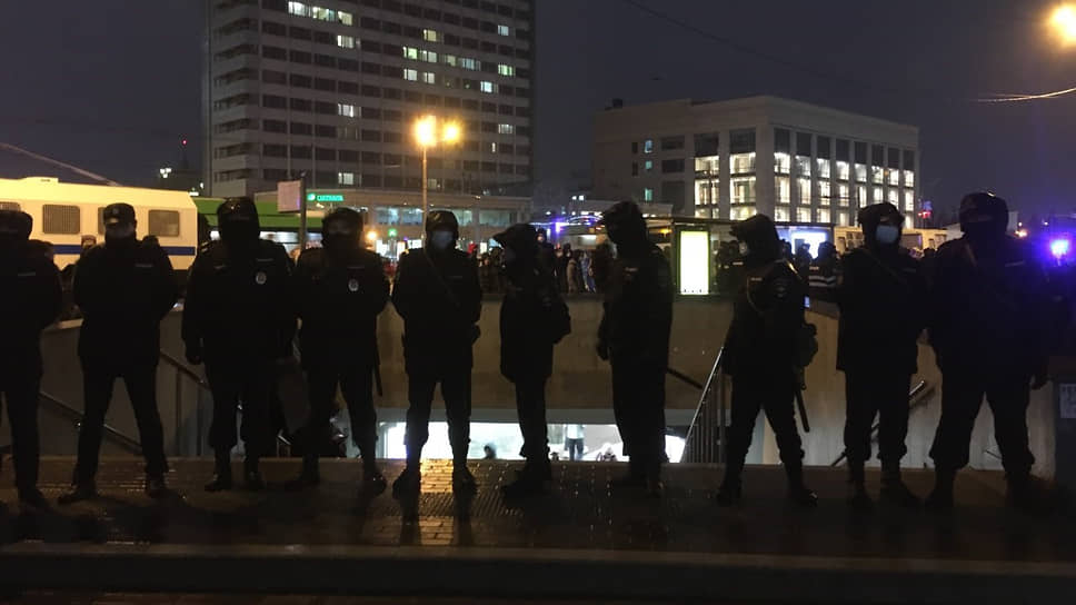Впрочем, через некоторое время стало понятно, что уйти с Баумана стало невозможно: полиция полностью оцепила участок улицы, а также перекрыла подземный переход и вход в метро. Кто-то попытался выйти через ГУМ. Позднее появились информация, что несколько человек задержали и посадили в автозаки. Около 150 человек продолжали оставаться в оцеплении где-то до 19:55. Многие жаловались, что не могут уйти, при этом не выпускали даже журналистов. Были возмущения и со стороны прохожих, что все перекрыто. Затем полиция стала постепенно отпускать народ небольшими порциями.