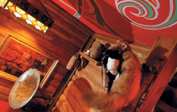 | Интерьер "Жар -птицы", выполненный в стиле лубка, должен особенно нравиться иностранцам |