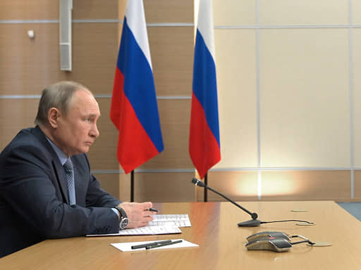 Президент России Владимир Путин во время совещания в режиме видеоконференции с вице-премьером Татьяной Голиковой
