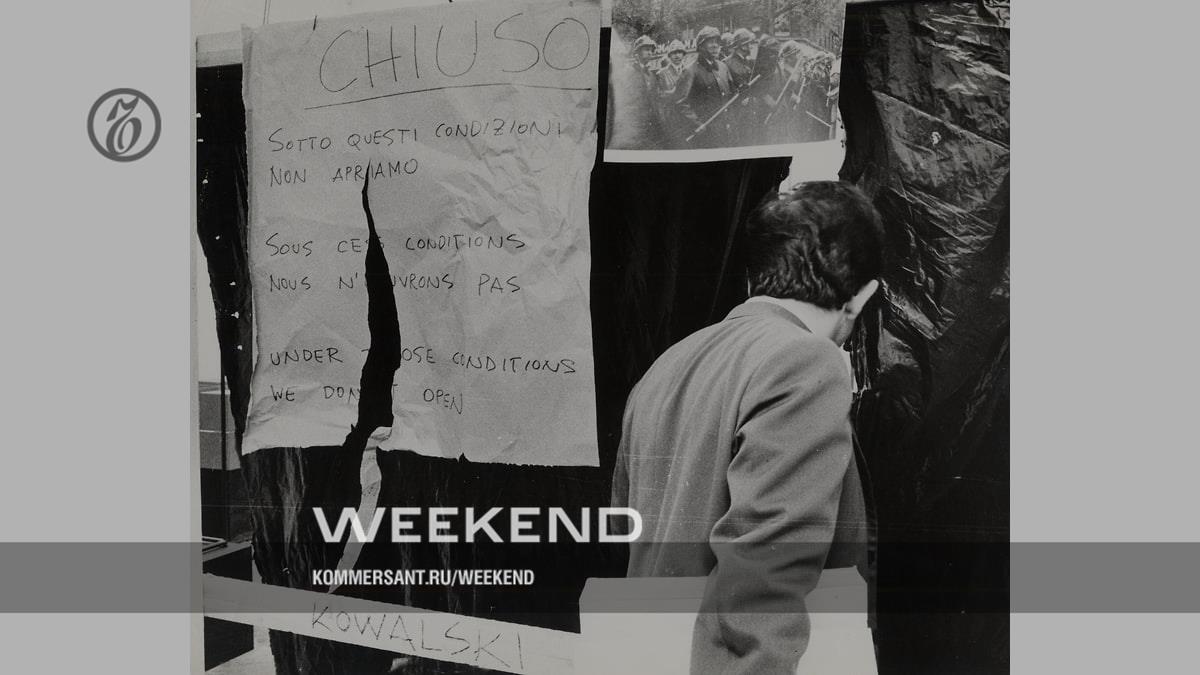 Сообщение о закрытии павильона на Венецианской биеннале 1968 года. Экспонат выставки «Встревоженные музы. Когда биеннале встречается с историей»