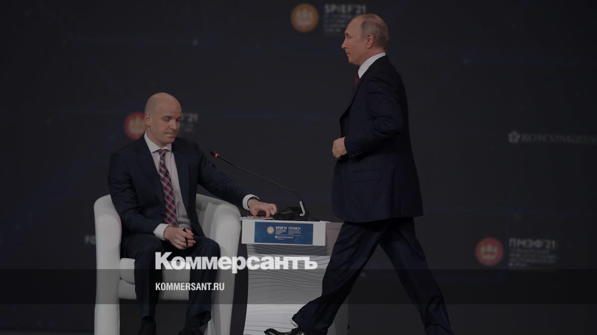 Модератор пленарного заседания Станислав Натанзон (слева) и президент России Владимир Путин