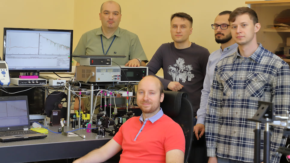 Коллектив авторов исследования. Слева направо: Денис Лаврухин, ИСВЧПЭ РАН, МГТУ им. Н. Э. Баумана; Дмитрий Пономарев, ИСВЧПЭ РАН, ИОФ РАН; Александр Ячменев, ИСВЧПЭ РАН; Никита Черномырдин, ИОФ РАН им. А. М. Прохорова; Игорь Глинский, ИСВЧПЭ РАН