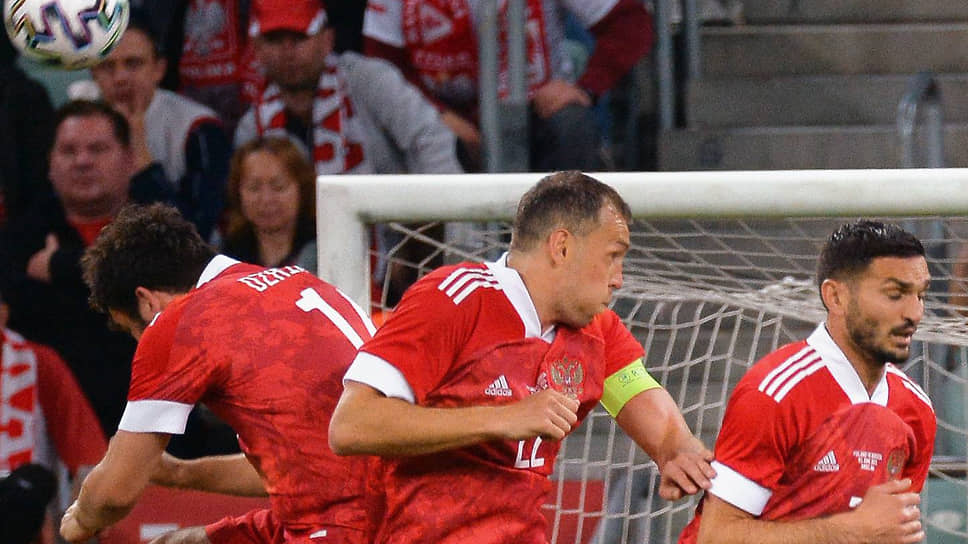 При идеальной подготовке к турниру сборная России (слева направо: Георгий Джикия, Артем Дзюба, Магомед Оздоев) способна «пошуметь» на чемпионате Европы