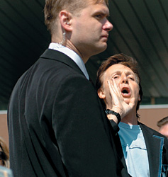 Около 70 тысяч зрителей посетили вечером 20 июня концерт Пола Маккартни, который после проливного дождя состоялся на Дворцовой площади Санкт-Петербурга. Примерно 10 тысяч из них — иногородние, причем в связи с небывалым наплывом московских битломанов (около 6 тысяч) железнодорожникам пришлось ввести несколько дополнительных поездов. Билет на самую неудобную часть площадки — в стоячий партер — стоил 600 руб., за право посидеть на мокрых креслах в VIP-зоне важные персоны отдавали по $1,5 тыс. Концерт охраняли 2500 сотрудников органов охраны порядка. На халяву музыкой сэра Пола наслаждались сотрудники Эрмитажа, служащие Генерального штаба и двое "зайцев", забравшихся на крышу Зимнего дворца.