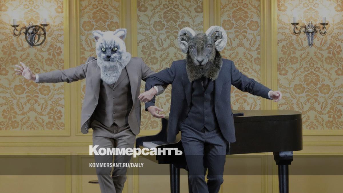 Похоже, это понимал и сам постановщик. В «Байке» он организовал симультанное действие на двух уровнях и четырех мини-сценах и предоставил публике возможность выбирать любой из четырех вариантов зрелища. Выбор был труден: в то время как слева на авансцене сдержанные юноши в голубых спорткостюмах проделывали вышеописанные экзерсисы, певцы на втором ярусе, смирно стоя в ряд, азартно выводили свои залихватско-абракадабристые переругивания. Справа вверху показывали лубочный мультфильм, в котором петух отбивается от лисы. А под ним на уровне сцены в золочено-белом салоне выделывали подобия присядок и «ковырялочек» четыре дореволюционных дворника (или половых) в картузах, жилетах, смазных сапогах и белых фартуках. В этом углу постановщик и сосредоточил львиную долю юмора: персонаж, похожий на Стравинского, беззвучно наигрывал на рояле, а некто похожий на Дягилева капризничал — размахивал руками, разбрасывая веером листы «партитуры». Вскоре на плечах упрямого «Дягилева» оказалась голова барана, а у мудрого «Стравинского», соответственно, кота. Петух, из-за которого весь сыр-бор, так и не появился, зато Лиса c меховой мордой, в сарафане и со скалкой в лапе сыграла важную роль — прогнала певцов, завершив многоликую «Байку».