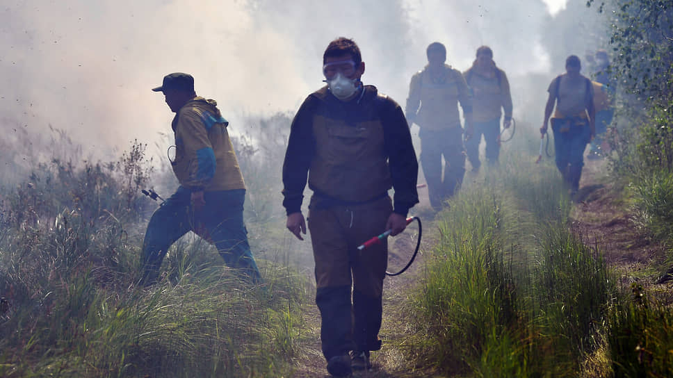 Сотрудники лесной охраны Якутии во время тушения пожара