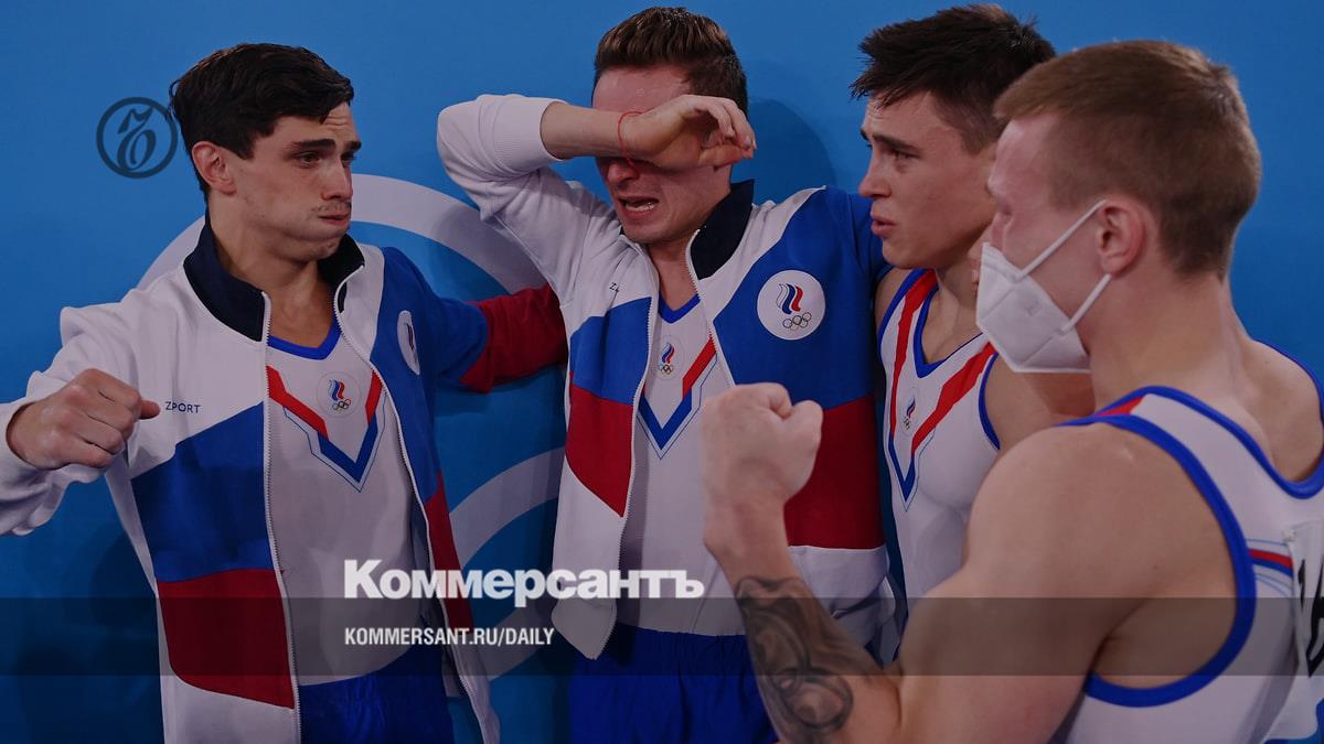 Мужская сборная России (слева направо: Артур Далалоян, Давид Белявский, Денис Аблязин, Никита Нагорный) впервые с 1996 года выиграла олимпийский командый турнир