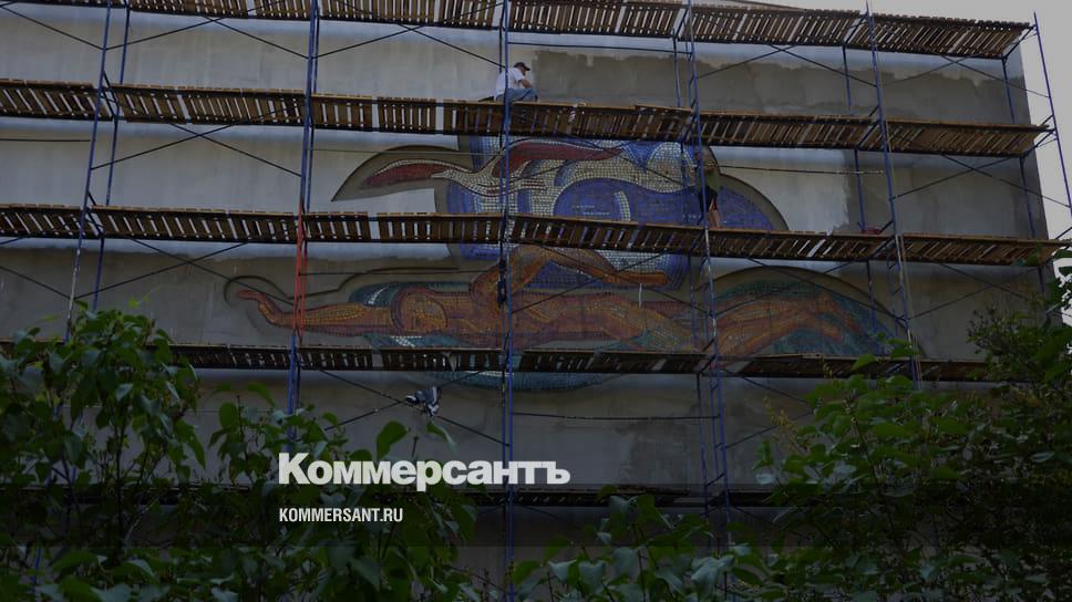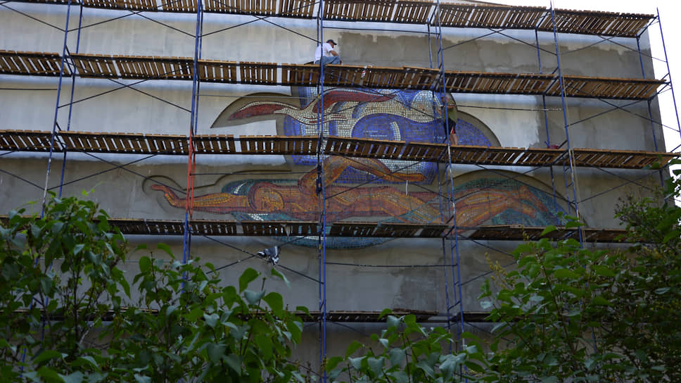 Фасад с восстановленной мозаикой на доме физкультуры с бассейном Горьковского автозавода (в народе известен как бассейн «Чайка») будет открыт в конце августа. Как сообщили “Ъ-Приволжье” в пресс-службе автозавода, мозаичное панно полностью восстановлено по образцу, имеющемуся в архивах предприятия.