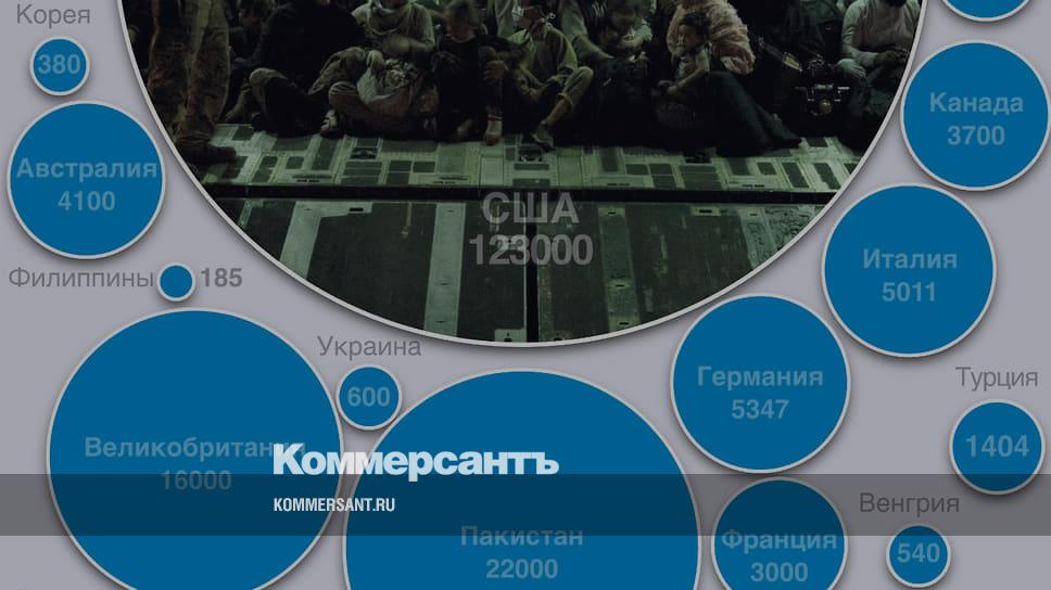 После прихода к власти в Афганистане террористического движения «Талибан» (запрещено в РФ) из страны было эвакуировано свыше 196 тыс. иностранцев и афганцев. Какие страны вывезли больше всего людей — в инфографике “Ъ”.
