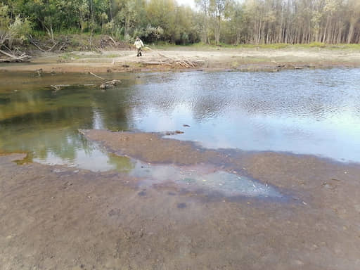Накануне в ведомство от очевидца поступила информация, что на берегу острова Рыбачий в лужах на частично обмелевшей протоке реки Обь было обнаружено загрязнение нефтепродуктами береговой линии реки Обь на площади около 100 кв. метров.