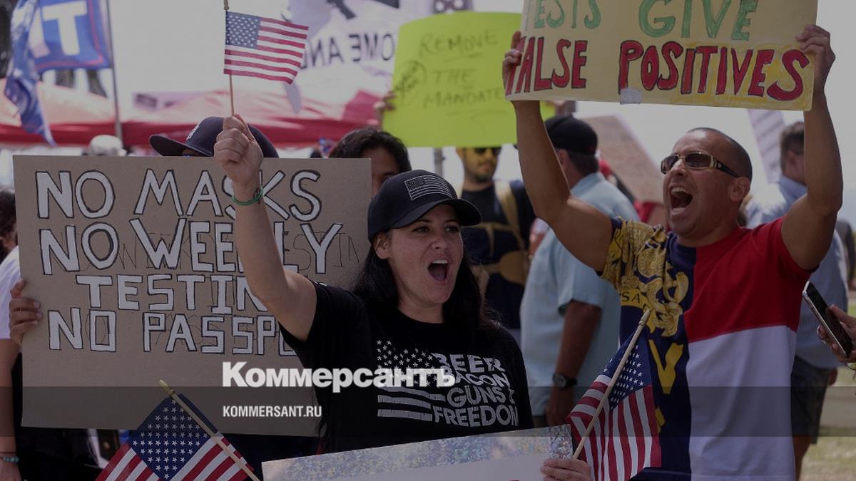 Протесты против вакцинации в Санта-Монике, Калифорния, в августе