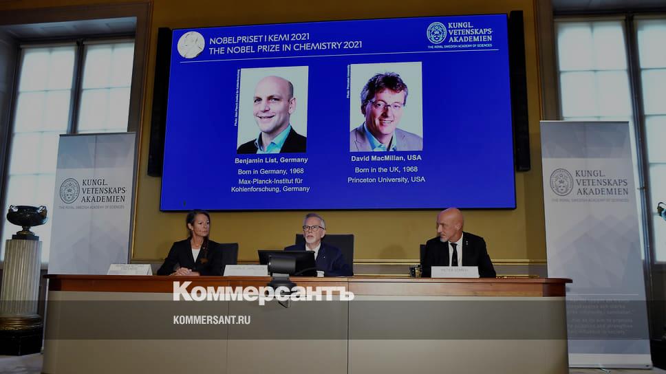 «Бенджамин Лист и Дэвид Макмиллан удостоены Нобелевской премии по химии 2021 года за разработку нового точного способа построения молекул — органокатализа. Он оказал значительное влияние на фармацевтические разработки и сделал химию более чистой»,— сообщила шведская Королевская академия наук на сайте премии. Ученым присужден приз в 10 млн крон суммарно, каждый получит равную долю.