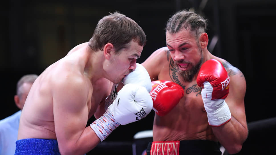 Федор Чудинов (слева) и Ронни Миттаг в поединке за титул WBA Gold в суперсреднем весе