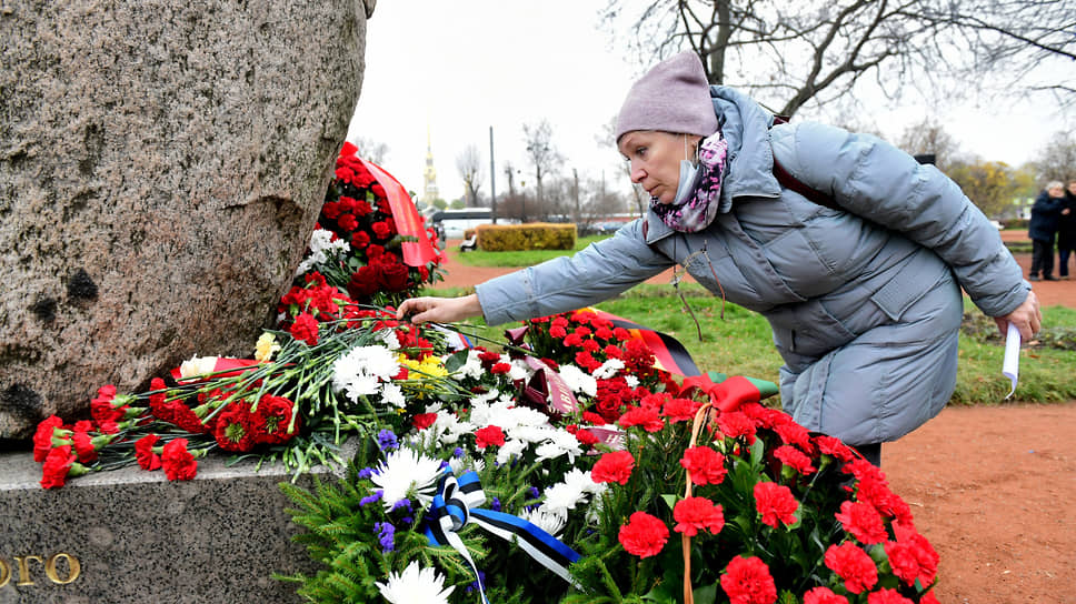 В Петербурге состоялась акция памяти жертв политических репрессий. У Соловецкого камня на Троицкой площади в субботу, 30 октября участники возложили цветы и венки.
