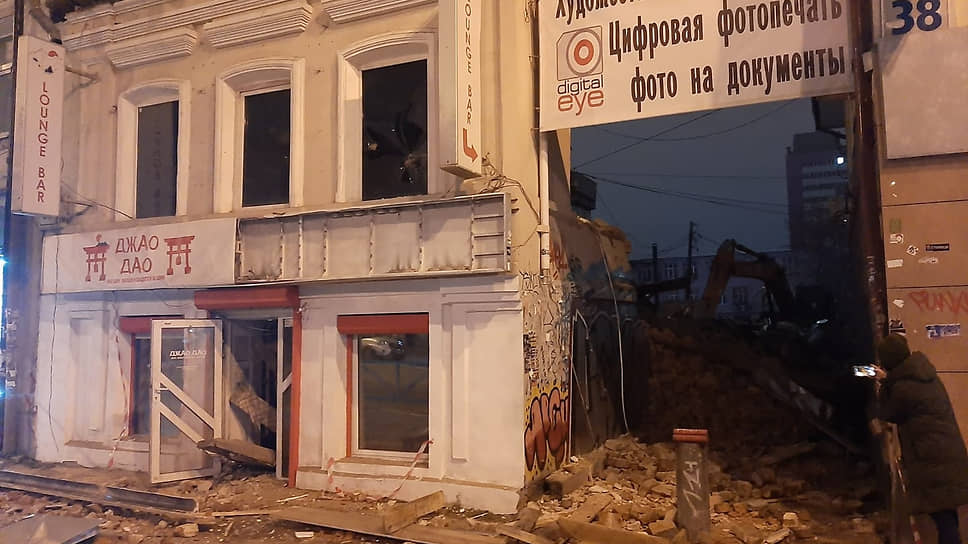 В Екатеринбурге в ночь с 5 на 6 ноября начался снос флигеля усадьбы Поповичевых, который находился на улице Малышева, 38Б. Об этом на своей странице в Facebook сообщил председатель общественной организации «Уральский хронотоп» Олег Букин. Он подчеркнул, что работы начались после 23:00 и без принятия мер безопасности, что является нарушениями.