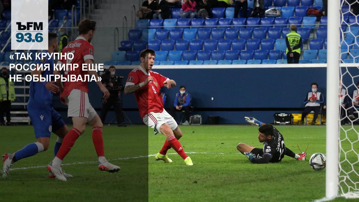 Счет матча, без сомнения, позитивный. Более того, за всю историю так крупно Россия Кипр еще не обыгрывала. Тренер российской сборной Валерий Карпин выпустил против соперников быстрых креативных игроков, у которых, похоже, была четкая задача — забить быстрый гол. И все как-то сразу сложилось. Уже на четвертой минуте Ерохин открывает счет к радости болельщиков и комментатора Владимира Стогниенко: «С правого фланга прострел. Это первый момент. Удар. 1:0. И это хорошо. Быстрый гол».