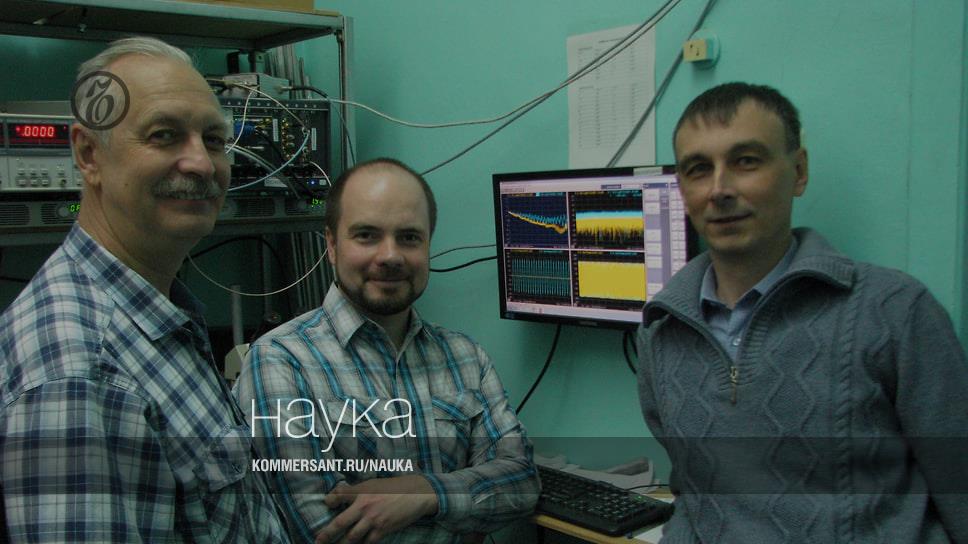 Экспериментаторы из лаборатории магнитоэлектроники СВЧ Саратовского филиала Института радиотехники и электроники имени В. А. Котельникова РАН рядом с установкой для исследования спиновых волн