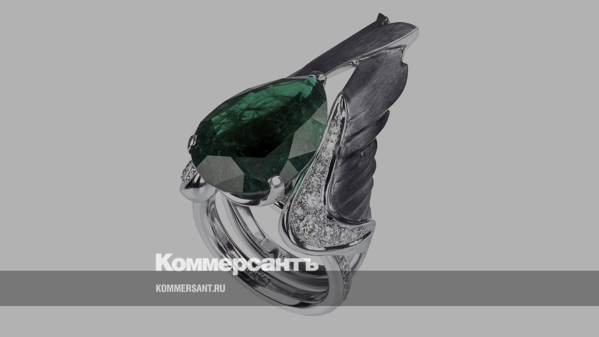 Кольцо-трансформер «Крылья», белое золото, бриллианты, замбийский изумруд (12 карат),