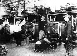 И все же самой замечательной деталью завода Форда был сборочный конвейер. А также то, что сам хозяин фирмы постоянно работал над оптимизацией каждой операции каждого рабочего, чтобы увеличить производительность труда. Этот метод организации дела стал называться "фордизацией" производства и приобрел популярность во всем мире. Но до России первая волна промышленной фордизации до первой мировой войны так и не дошла.