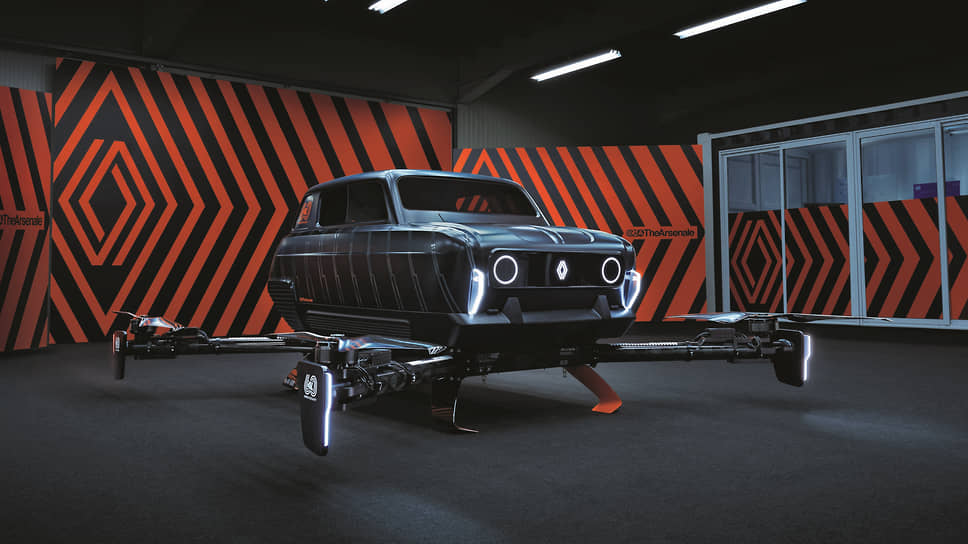 Юбилей отмечался торжественно и неоднократно. Кульминацией стал летающий шоукар Air4 Renault с узнаваемым кузовом модели в натуральную величину, созданный Renault совместно с центром моушн-дизайна TheArsenale. Чтобы обеспечить возможность приложения подъемной силы и горизонтальной тяги, инженерам TheArsenale потребовалось провести множество расчетов с привлечением искусственного интеллекта. У необычного летающего шоукара Air4 Renault имеется четыре двухлопастных винта по одному в каждом углу кузова. Их приводят в действие литий-полимерные аккумуляторы емкостью 22 000 мА·ч общей мощностью 90 000 мА·ч. Максимальная горизонтальная скорость гигантского дрона составляет порядка 90 км/ч, максимальная высота полета – 700 м. Кабина держится на раме. Внутри обустроено всего одно место для пилота. Попасть внутрь не так-то просто, требуется поднять заднюю часть карбонового корпуса вверх. Аппарат создан в одном экземпляре к празднованию торжеств и служит для демонстрации простой истины: в будущем у земных дорог обязательно появится альтернатива в небе.