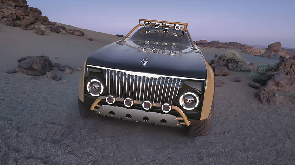 Project Maybach как бы уводит премиальный бренд с городских улиц покорять дикие места планеты. Под прозрачным тонированным капотом находятся солнечные батареи для подзарядки основного аккумулятора электромобиля, как бы намекая, что технические возможности машины приспособлены для местности с неразвитой инфраструктурой. Благодаря защите салона трубчатым каркасом, переходящим на светопрозрачной крыше в багажник, а спереди – в «кенгурятник» с мощными прожекторами, элитной паре романтиков можно особо не опасаться провокаций извне ни на камнях пустыни, ни в диких джунглях. В салоне – этакой «капсуле роскоши» – можно и заночевать. Оба сиденья раскладываются, образуя удобное ложе. Кстати, в нише за стеклом близ двери водителя предусмотрен даже молоток. Вероятно, чтобы было чем разбить стекло в случае аварии, такой как опрокидывание, и выбраться наружу.