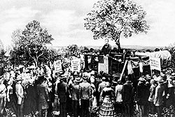6 июля 1854 года в городе Джексоне (штат Мичиган) собрались мужчины и женщины, не желавшие мириться с распространением рабства и считавшие, что правительство должно бесплатно передать гражданам западные земли. Людей было так много, а день был такой жаркий, что встречу пришлось перенести из самого большого городского здания в дубовую рощу неподалеку от ипподрома. Собравшиеся постановили: "Ввиду необходимости борьбы за основополагающие принципы республиканского правления и против замыслов аристократии, самых отвратительных и деспотических из всех, которые когда-либо оскверняли землю и унижали достоинство человека, мы будем действовать вместе и называться республиканцами до тех пор, пока борьба не будет завершена".
