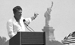 Новый поворот в истории Республиканской партии связан с именем Рональда Рейгана. К этому моменту идеологические различия между двумя партиями перестали казаться избирателям очевидными и принципиальными. Многие думали про себя, что республиканец — это просто постаревший и разбогатевший демократ. Однако перебежчику Рональду Рейгану, долгие годы голосовавшему за демократов, суждено было стать одним из самых ярких республиканских президентов. Его вариант республиканства в экономике базировался на резком снижении налогов, во внешней политике — на последовательном антикоммунизме и больших военных расходах, а в области общественной морали — на традиционном консервативном наборе: за семейные ценности, за молитвы в школах, за патриотизм и ношение оружия, против абортов, свободной любви и предоставления особых прав разным меньшинствам. Рейган неутомимо боролся против равенства во имя свободы: "Американская мечта заключается не в том, что каждый человек должен быть равен всем остальным людям. Американская мечта в том, что каждый человек должен быть свободен, чтобы стать таким, каким замыслил его Господь". Главным врагом свободы для Рейгана было правительство, вмешательство которого в дела граждан и компаний следовало максимально ограничить. Самыми пугающими словами для него были: "Я из правительства, и я здесь, чтобы помочь вам".