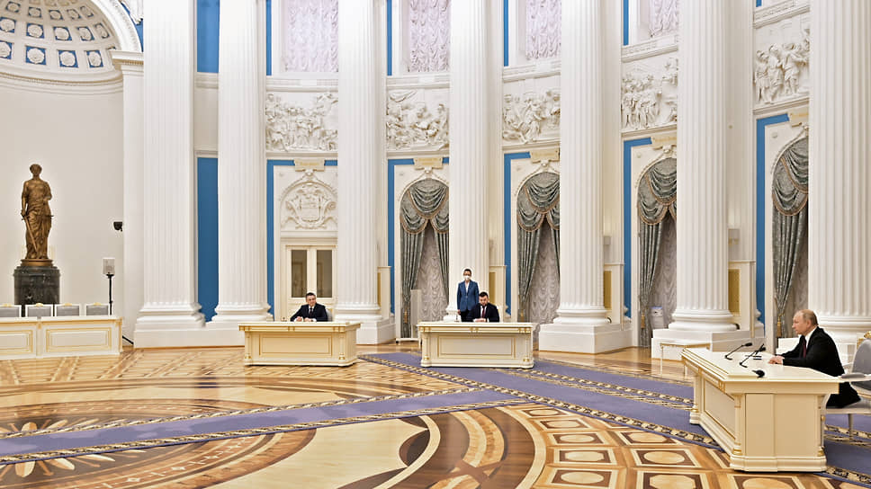 Они собрались в Екатерининском зале Кремля среди царского блеска, в комнате со сводчатыми потолками, мрамором и роскошными канделябрами. Для Владимира Путина и его главных помощников это экстренное заседание Совета безопасности России должно было продемонстрировать силу и решимость Кремля.
