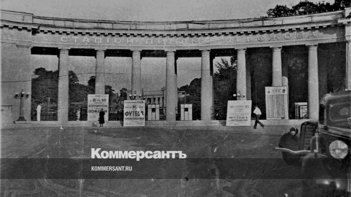 На заднем плане знаменитая колоннада стадиона в Киеве, появившаяся на углу улицы Кирова и Петровской аллеи все в том же 1936 году. При желании можно даже рассмотреть, что написано на афишах. С 8 по 18 августа выступление Краснофлотского ансамбля песни и пляски. Потом сразу футбол. Киев принимает Днепропетровск. А в сентябре – «футбол на мотоциклах». Именно так! Мотобол как вид спорта возник во Франции в 1931 году и, как видим, достаточно быстро добрался до СССР. Интересна и надпись на верхней части колоннады: «Стадiон Динамо им. М.I. Ежова». М.I. – потому что «Мыкола Иванович», Николай Иванович, если по-русски.