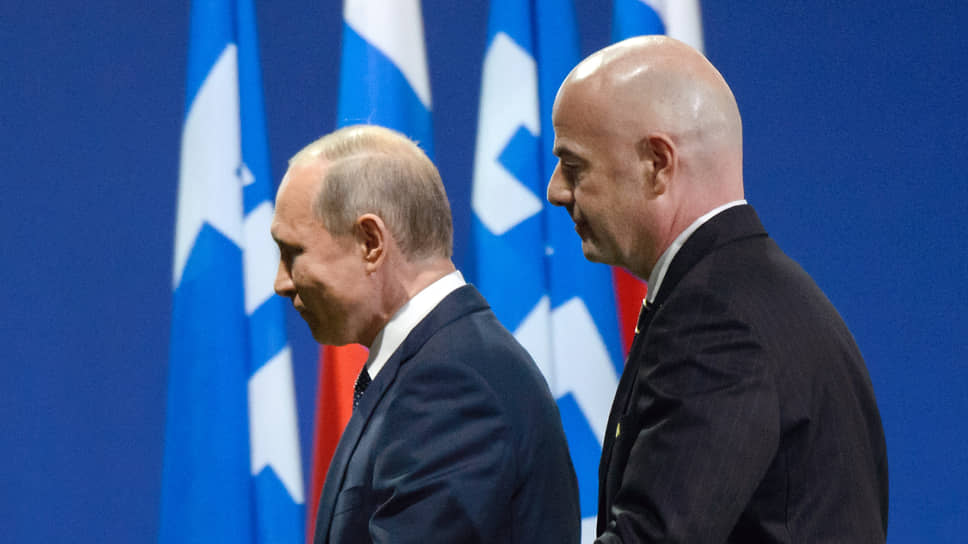 Хорошие отношения с Владимиром Путиным не помешали президенту FIFA Джанни Инфантино (справа) отстранить сборную России от всех международных турниров