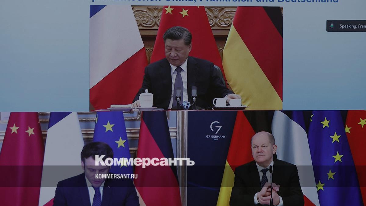 Председатель КНР Си Цзиньпин с президентом Франции Эмманюэлем Макроном и канцлером ФРГ Олафом Шольцем