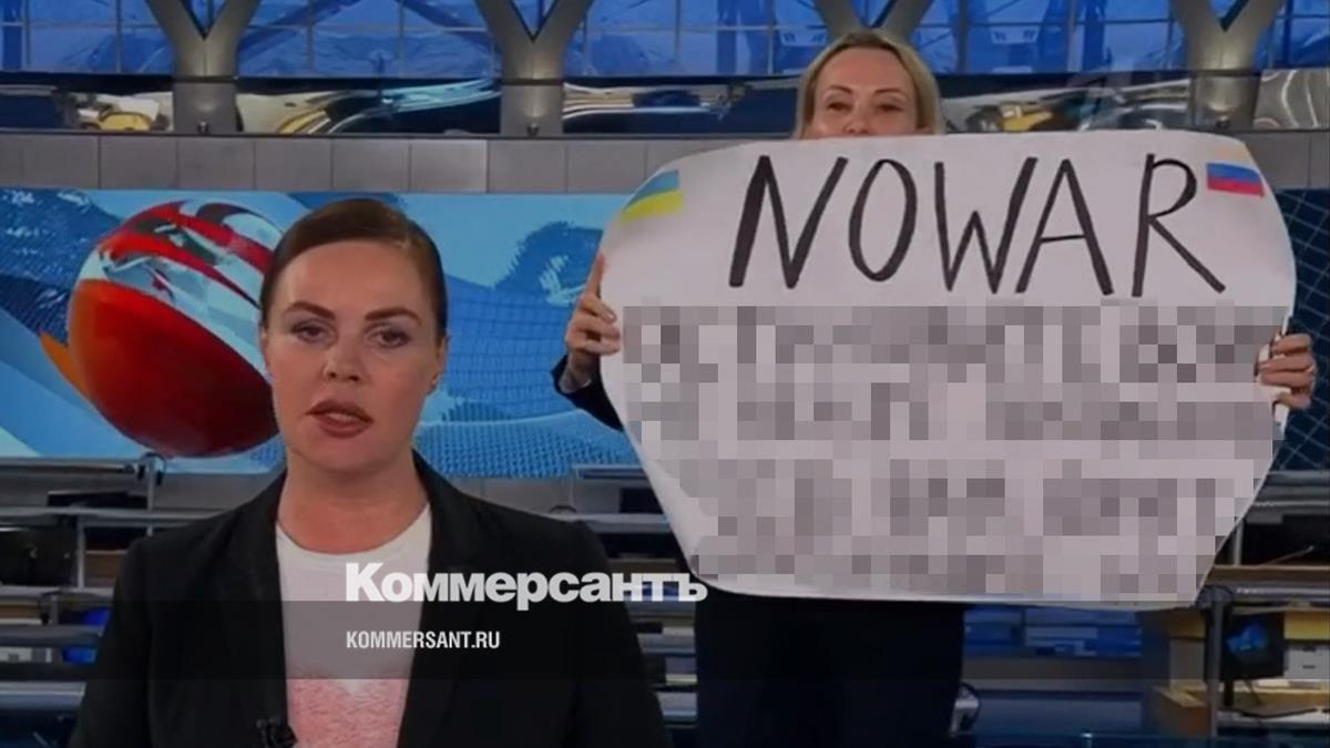 Вечером 14 марта сотрудница «Первого канала» Марина Овсянникова в прямом эфире встала за спиной ведущей новостной программы. Она держала плакат с флагами России и Украины, а также антивоенными лозунгами на английском и русском языках. Госпожа Овсянникова успела несколько раз выкрикнуть призыв остановить специальную военную операцию (употребив при этом другое слово). Через три секунды картинку из студии сменила заставка новостного блока.