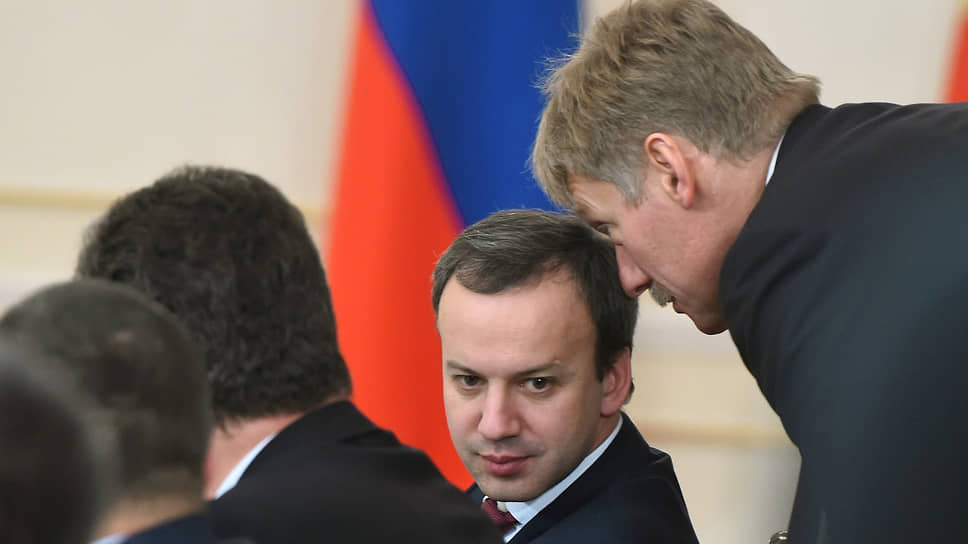 Аркадий Дворкович (слева) и Дмитрий Песков в 2015 году